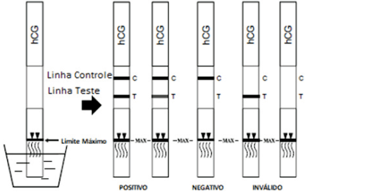 O resultado será inválido se não aparecer nenhuma linha colorida na região C (controle), mesmo que apareça uma linha na região T (teste). Você deve repetir o teste com um novo dispositivo. Caso a dúvida persista o usuário deverá entrar em contato com o SAC.